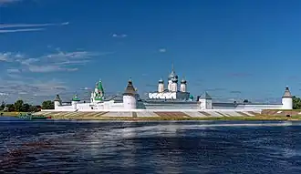 La mayoría de los principales edificios que se conservan del monasterio fueron construidos en piedra entre 1651 y 1667. El perímetro que rodea el complejo fue vallado a modo de fuerte con murallas de piedra, y formando un cuadrado de unos 200 metros con torres en cada esquina. De ese periodo cabe destacar la catedral (reconstruida) de la Santa Trinidad (1658), la Iglesia de la Dormición de Nuestra Señora (conocida como "Uspenski") con un extenso refectorio de dos plantas de 420 m², el campanario (1651), la iglesia de San Miguel Arcángel sobre la puerta sur y las celdas de clausura monástica.[2]