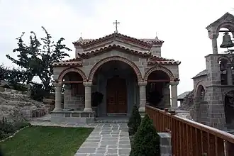 El monasterio está conectado con la carretera moderna con un pequeño puente. Las celdas del monasterio se sitúan a ambos lados de la entrada principal. Al sureste del recinto se encuentra la antigua iglesia del monasterio, que data del siglo XV. Es una pequeña iglesia, de una sola nave, decorada con elementos sencillos, obra de Nicholas Kastrinsio. La nueva iglesia se encuentra en el noroeste del recinto y data del año 1798.[2]