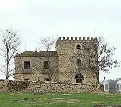 Aneja al complejo conventual principal, por el extremo suroccidental, aunque ciertamente como elemento distinto del mismo, se alza una fuerte torre, de sólida estructura, que por su disposición, materiales y resolución constructiva, se evidencia como cuerpo distinto del monasterio y de época distinta. En esta torre se localizan dos arcos de cantería de medio punto.
