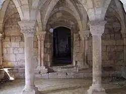 La sala capitular, la otra parte del cenobio que se conserva más o menos íntegra, está conectada con el lienzo meridional de la iglesia a través de la sacristía. Se trata de un espacio de planta rectangular cubierto con bovedillas de crucería simple sostenidas por cuatro columnas centrales, cilíndricas y de fuste liso, de las que parten los nervios, al modo palmeriforme, dando lugar a nueve tramos de bóveda.