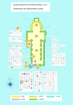 - ↑ «Enciclopedia del Románico, Sª. Mª. La Real; León». Carracedo del Monasterio; Monasterio de Santa María, pág. 273. Archivado desde el original el 13 de enero de 2019. Consultado el 9 de octubre de 2013.