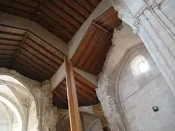 Los brazos del crucero se cubren con bóveda de cañón apuntado; en los extremos se abren ventanas de medio punto. El tramo central tiene bóveda de crucería. Sólo estos dos últimos tramos y la cabecera conservan el estilo románico-gótico de su origen; el resto hasta los pies es producto de los diversos cambios arquitectónicos efectuados a partir del siglo XVI, contando además con anteriores reparaciones y modificaciones hechas en los siglos XIII y XV, de las que se tiene noticia sólo a través de las donaciones hechas para ello.