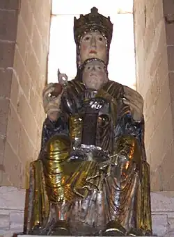 Respondiendo al tipo iconográfico de Sedes sapientiae, data de mediados del siglo XII y está realizada en madera policromada recubierta con plata, a excepción de las manos y la cara. La figura materna, deshumanizada, en un postura totalmente frontal, rígida y simétrica cuya finalidad es servir de «asiento de la sabiduría» para su hijo. La figura de Jesús responde a la segunda persona, el Hijo, de la Santísima Trinidad que simboliza la Suprema Sabiduría; su postura igualmente frontal, y alejada de reflejar la edad de un niño de su edad, levanta su diestra en actitud de bendecir al observador. Presenta una inusual y excepcional filacteria donde se lee: «Puer natus est nobis, venite adoremus. Ego sum alpha et omega, primus et novissimus Dominus.» Solo se conoce con este tipo de inscripción otro caso similar en una imagen suiza.[43]