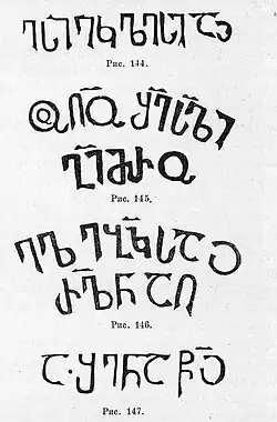- ↑ Uvarova, Praskovya (1894). ru:Материалы по археологии Кавказа, собранные экспедициями Московского археологического общества. Вып. 4. Materials for archaeology of the Caucasus, collected by the expeditions of the Moscow Archaeological Society (en ruso) (4). Moscú: Moscow Archaeological Society. pp. 165-172.