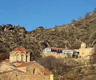 El monasterio está situado a los pies de la fortaleza medieval llamada las Torres de Marko.[3]