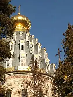- el katholikon de la Resurrección (1656–1685) es una gran rotonda modelada según la Iglesia del Santo Sepulcro. La cúpula de madera y un grupo de capillas vecinas son de construcción posterior. Estas fueron diseñadas por Francesco Bartolomeo Rastrelli, Vincenzo Bernardacci, Karl Blank, Konstantin Thon, Matvéi Kazakov, Iakov Boukhvostov y otros arquitectos destacados del Imperio ruso.