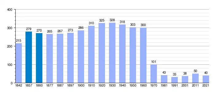 | Gráfica de evolución demográfica de Monasterio de la Sierra[2] entre 1842 y 2021 |