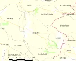 Monblanc (en occitano Montblanc[3]) es una población y comuna francesa, ubicada en la región de Mediodía-Pirineos, departamento de Gers, en el distrito de Auch y cantón de Samatan.