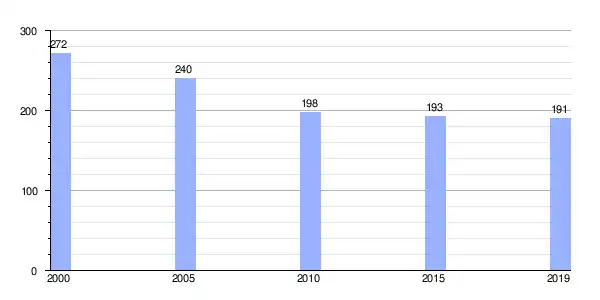 | Gráfica de evolución demográfica de Moncelos entre 2000 y 2019 |