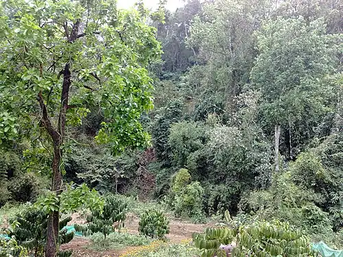 A 10 km de la Ciudad de Sen Monorom, cerca de grandes plantaciones de café, mango, avocado/aguacate, es un lugar de bosques.