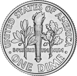 En el anverso de la moneda aparece el trigésimo segundo presidente de Estados Unidos, Franklin D. Roosevelt, y en el reverso aparece una antorcha, una rama de roble y otra de olivo. Asimismo, aparece la leyenda E pluribus unum y el valor de la moneda ("one dime", dado que el nombre "dime" no solo hace referencia a la moneda, sino a 1/10 de dólar).