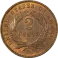 La moneda de dos centavos fue acuñada por la Casa de Moneda de los Estados Unidos para su circulación desde 1864 hasta 1872 y para coleccionistas en 1873. Diseñada por James B. Longacre, tuvo acuñaciones decrecientes cada año, ya que otras monedas menores como la moneda de cinco centavos resultaron ser más populares. Su producción fue abolida por la Ley de la Moneda de 1873.