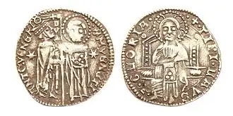 Las monedas de Venecia fueron aquellas acuñadas por la República de Venecia desde la segunda mitad del siglo XII, hasta el advenimiento del Reino de Italia en 1866.[3] Después de esta fecha, la ceca fue disuelta en sus funciones y fue finalmente abolida en 1870.[4][5]