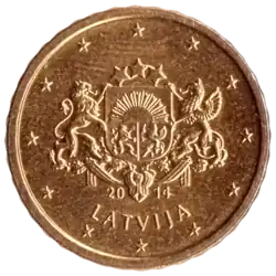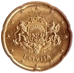 El 1 de enero de 2014, Letonia se convirtió en el decimoctavo país de la Unión Europea en adoptar el euro como moneda oficial, sustituyendo al lats letón.[6] El 9 de julio de 2013, se había establecido la tasa de cambio irrevocable en 0,702804 lats letones = 1 euro.[7]