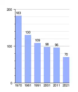 | Gráfica de evolución demográfica de Monesma Y Cajigar[4] entre 1970 y 2021 |