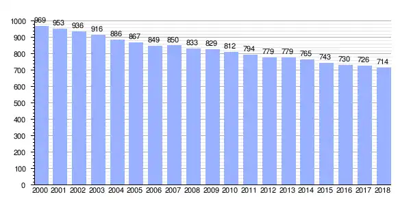 | Gráfica de evolución demográfica de Monfero[3] entre 2000 y 2018 |