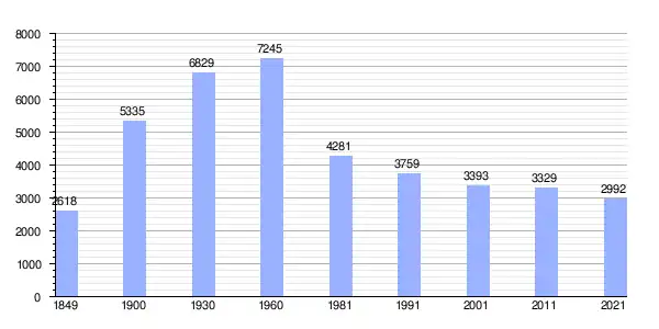 | Gráfica de evolución demográfica de Monforte entre 1849 y 2021 |