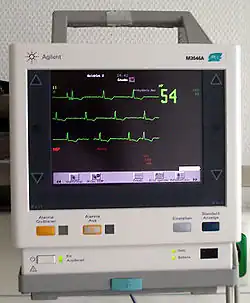 Un monitor médico también puede tener la función de producir una alarma (como el uso de señales audibles) para alertar al personal médico cuando se establecen ciertos criterios, como cuando algún parámetro excede los límites de niveles normales.