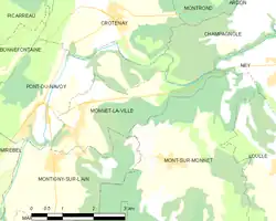 Monnet-la-Ville es una localidad y comuna francesa situada en la región de Franco Condado, departamento de Jura, en el distrito de Lons-le-Saunier y cantón de Champagnole.