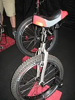 El monociclismo de montaña utiliza monociclos con ejes más fuertes, llantas más grandes y pedales con mejor agarre, así como marcos de mayor resistencia. Algunos incluso están equipados con frenos de rueda montados bajo el sillín para facilitar las bajadas, pero no para desacelerar o parar.