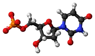 En presencia de un exceso de ATP, la enzima ribonucleótido reductasa inicia una reacción en cadena con el UDP, que cataliza la formación de difosfato de desoxiuridina (dUDP), que a su vez se convierte en trifosfato de desoxiuridina (dUTP) y luego en monofosfato de desoxiuridina (dUMP) mediante la adición o eliminación de grupos fosfato.[4]