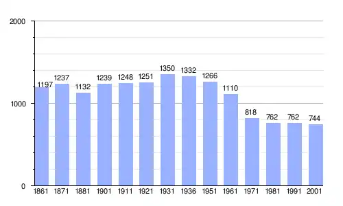 | Gráfica de evolución demográfica de Monsampietro Morico entre 1861 y 2001 |