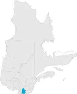 Limita con las regiones quebequeses de Centre-du-Québec y Estrie, con los estados estado estadounidenses de Nueva York y de Vermont, así como con el Vallée-du-Haut-Saint-Laurent y la aglomeración de Longueuil. A la otra orilla del San Lorenzo se encuentran las regiones de Montreal y de Lanaudière.