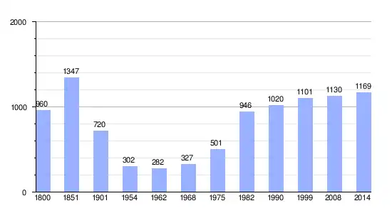 | Gráfica de evolución demográfica de Mont-de-Lans entre 1800 y 2014 |