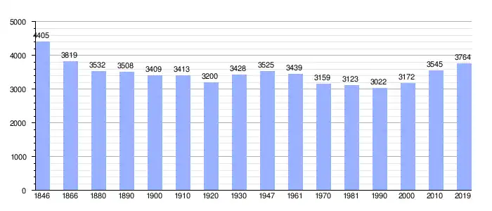 Todos los datos históricos relativos al actual municipio, el siguiente gráfico refleja su evolución demográfica, incluyendo municipios después de efectuada la fusión el 1 de enero de 1977.