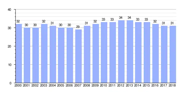 | Gráfica de evolución demográfica de Montañó entre 2000 y 2018 |