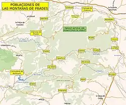 ![]() Montañas de Prades Ubicación en Cataluña. | ||