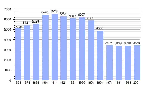 | Gráfica de evolución demográfica de Montaione entre 1861 y 2001 |