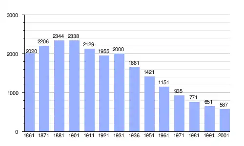 | Gráfica de evolución demográfica de Montaldo di Mondovì entre 1861 y 2001 |