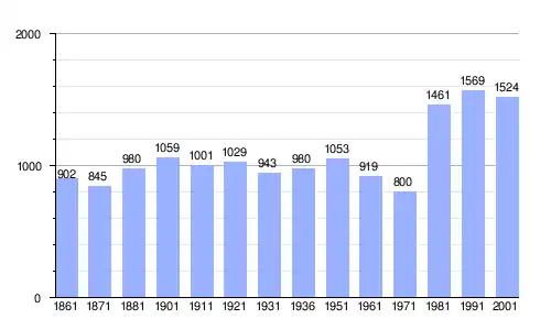| Gráfica de evolución demográfica de Montanaso Lombardo entre 1861 y 2001 |
