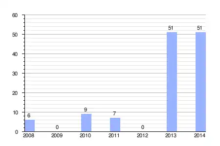 | Gráfica de evolución de la deuda viva del ayuntamiento entre 2008 y 2014 |