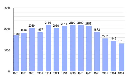 | Gráfica de evolución demográfica de Montauro entre 1861 y 2001 |