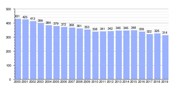 | Gráfica de evolución demográfica de Monte entre 2000 y 2019 |