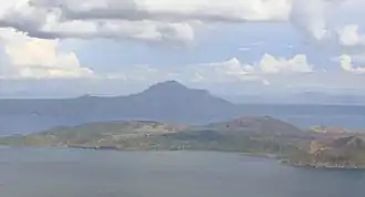 La montaña es de aproximadamente 947 m (3.107 pies) de altura y también se encuentra junto al lago Taal. El monte Makulot y su muro de piedra volcánica de 700 metros (2.300 pies) de alto, se dice que es parte del borde del cráter de la Caldera Taal.[2]