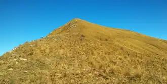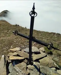 Cerca de la cima de la montaña hay una cruz de la cumbre.