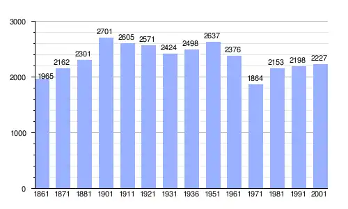 | Gráfica de evolución demográfica de Monte Porzio entre 1861 y 2001 |