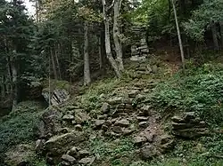 Rodeando la cima plana del monte, a lo largo de unos 10 km de longitud, se halla el llamado Muro pagano (mur païen), una obra de fortificación megalítica formada por cerca de 300 000 bloques de piedra y que alcanza entre 1,60 y 1,80 metros de anchura por 3 m de altura como máximo. Diversas leyendas tradicionales de la región sobre sus orígenes y contexto son objeto de controversia entre los especialistas, que se dividen entre los que consideran que se trata de una construcción del siglo II a. C. o aquellos que piensan que se remonta hasta la Edad del Bronce.