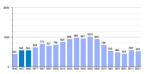 | Gráfica de evolución demográfica de Montearagón[3] entre 1842 y 2021 |