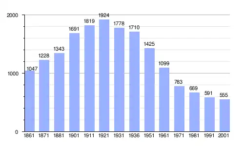 | Gráfica de evolución demográfica de Montecalvo Versiggia entre 1861 y 2001 |