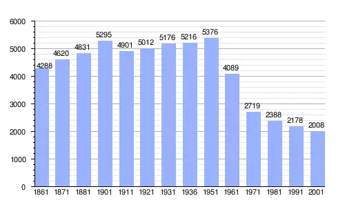 | Gráfica de evolución demográfica de Montecatini Val di Cecina entre 1861 y 2001 |