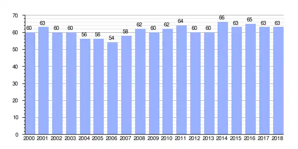 | Gráfica de evolución demográfica de Montecelo entre 2000 y 2018 |