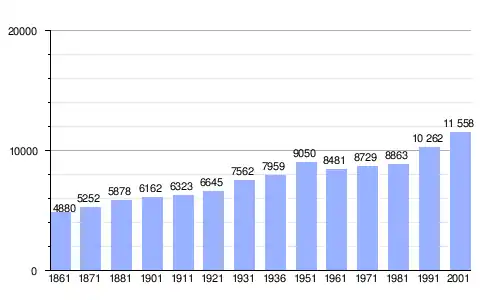 | Gráfica de evolución demográfica de Montecorvino Rovella entre 1861 y 2001 |