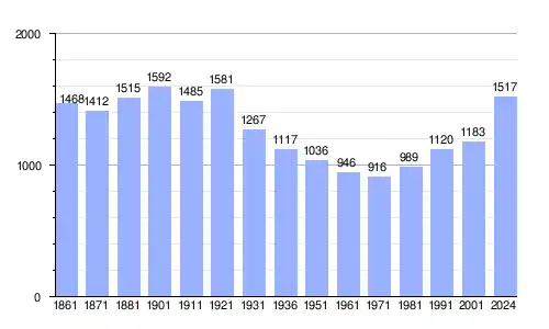 | Gráfica de evolución demográfica de Montegrino Valtravaglia entre 1861 y 2024 |