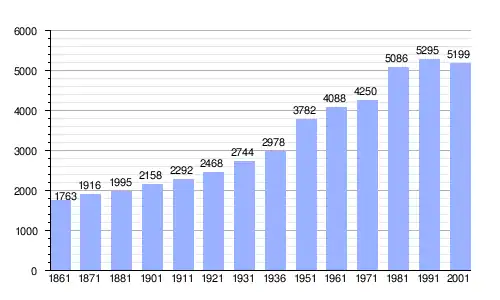 | Gráfica de evolución demográfica de Monteiasi entre 1861 y 2001 |