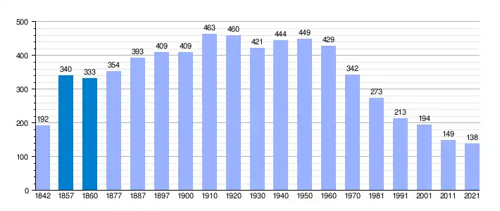 Población de derecho según los censos de población del INE. Población de hecho según los censos de población del INE.En 1955 crece el término del municipio porque recibe a una parte de Linares del Arroyo.[6] |