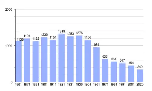 | Gráfica de evolución demográfica de Monteleone di Fermo entre 1861 y 2025 |